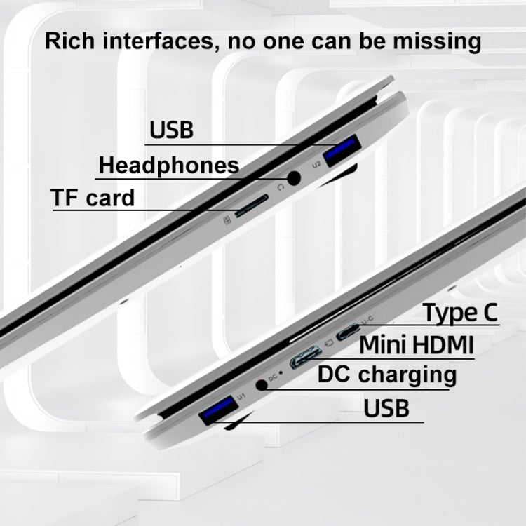 17. Interface: USB3.0 x2, Mini HDMI x1, 3.5mm headphone1 jack x1, DC-in x1, Micro SD card reader x1, Type-C x1