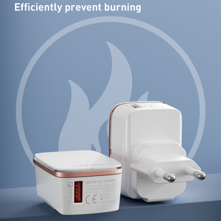 LDNIO A1204Q QC3.0 18W USB Fast Charger with 1m USB to Micro USB Cable, Plug Type:AU Plug(White Gold)