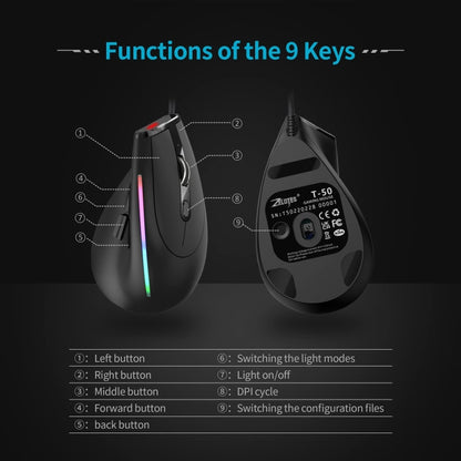 ZELOTES T50 9-Keys RGB Lighting Effect Vertical Grip Ergonomic Programming Wired Mouse(Black)